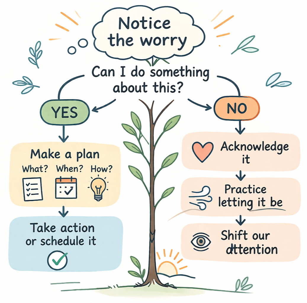 Controllability matters: Worries about things we can influence may benefit from a concrete plan; worries outside our control are less likely to be productive if we stay in the moment with them.